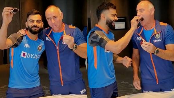 இதனால் தனது வெற்றியை கொண்டாடும் விதமாக பாடி உப்டானுக்கு தான் கோலி கேக் வெட்டி ஊட்டினார். இந்த நிலையில், விராட் கோலியின் பிறந்த நாள் விழாவில் ரோகித் சர்மா மட்டும் பங்கேற்கவில்லை. ரோகித்தை தவிர மற்ற அனைத்து வீரர்களும் இருந்தனர். இந்த சம்பவம் ரசிகர்களிடையே சந்தேகத்தை ஏற்படுத்தியுள்ளது. ரோகித் தனது குடும்பத்தினருடன் வெளியே சென்று இருக்கலாம் என்றும் கூறப்படுகிறது.