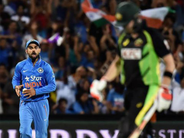 கேட்சை பிடித்ததும், ஸ்மித்தை நோக்கி, வெளியே போ, வெளியே போ என்று கூறுவதை போல கைகளை அசைத்துக்காட்டி கோபத்தை வெளிப்படுத்தினார் விராட் கோஹ்லி. வெளியே போய் இன்டர்வியூ கொடு என்று சொல்வதை போல இருந்தது கோஹ்லி நடவடிக்கை.