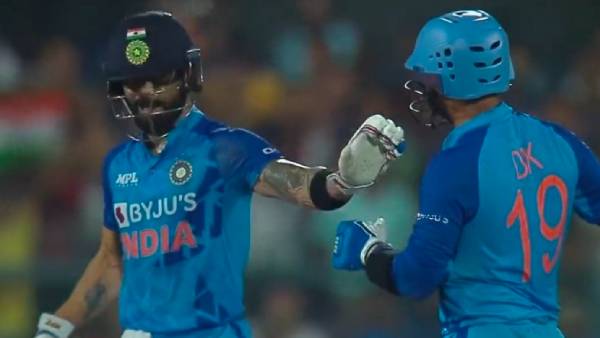 இந்நிலையில் இந்த போட்டியில் நடந்த சுவாரஸ்ய நிகழ்வு நெகிழ்ச்சியை ஏற்படுத்தியுள்ளது. இந்திய அணி இன்னிங்ஸின் போது, சிறப்பாக விளையாடி வந்த விராட் கோலி 19வது ஓவர் வரையில் 28 பந்துகளில் 49 ரன்களை அடித்திருந்தார். அரைசதம் அடிக்க கடைசி ஓவரில் இன்னும் ஒரு ரன் தேவை என்ற சூழலில் தான் தினேஷ் கார்த்திக் ஸ்ட்ரைக்கிற்கு வந்தார்.