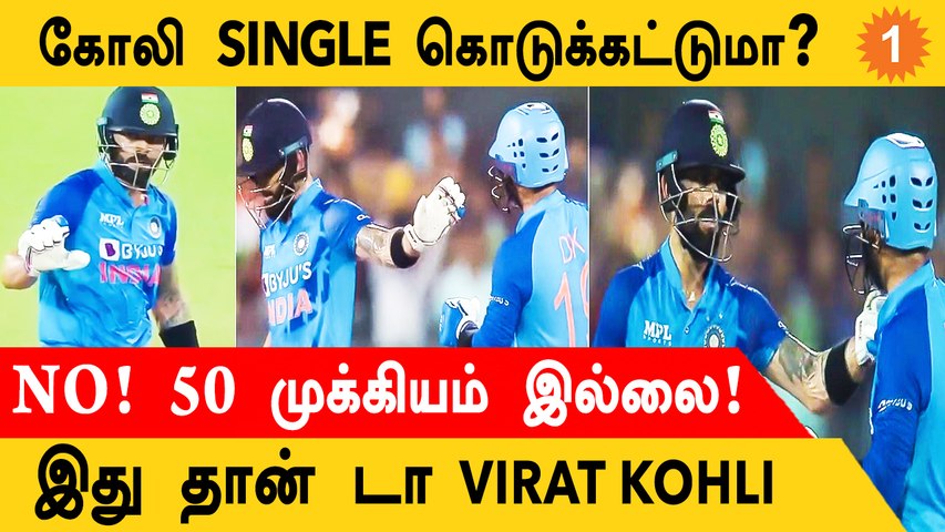 20வது ஓவரின் முதல் பந்திலேயே தினேஷ், நேராக கோலியிடம் சென்று ஸ்ட்ரைக் கொடுக்கவா?? என்பது போல் கேட்டார். ஆனால் கோலியோ, அதெல்லாம் ஒன்றும் வேண்டாம், எனது அரைசதத்தை விட, அணியின் ஸ்கோரே நமக்கு முக்கியம், சிக்ஸர்களாக தூக்கி அடி என சைகை காட்டி எந்தவித சுயநலமும் இல்லாத முடிவை எடுத்தார். இதனை பார்த்த ரசிகர்கள் நெகிழ்ச்சியில் ஆழ்ந்தனர்.
