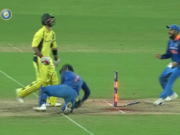 இருப்பினும் எளிதாக பிடிக்கமுடியாத அந்த பந்தை பிடித்த டோணி, மேக்ஸ்வெல் மீண்டும் பிட்சுக்குள் வருவதற்கு முன்பாகவே மின்னல் வேகத்தில் செயல்பட்டு ஸ்டெம்பிங் செய்தார். டோணியின் மின்னல் வேக ஸ்டெம்பிங்கால் மேக்ஸ்வெல் ஆட்டம் முடிவடைந்தது. ஆஸி. மொத்தமே வார்னர், மேக்ஸ்வெல், ஸ்மித் ஆகிய மூவரைத்தான் பேட்டிங்கில் பெரிதும் நம்பியிருந்தது. வார்னர் முதலிலேயே கிளம்பிவிட்டார். மேக்ஸ்வெல்லை கஷ்டமான ஸ்டெம்பிங் மூலம் வெளியே அனுப்பி இந்திய வெற்றியை சாத்தியமாக்கினார் டோணி.