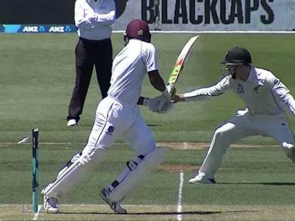 மேற்கிந்திய தீவுகள் அணிக்கும் நியூசிலாந்து அணிக்கும் இடையில் தற்போது டெஸ்ட் தொடர் நடைபெற்று வருகிறது. இந்த போட்டியில் மேற்கிந்திய தீவுகள் அணி சார்பாக முதல் முறையாக சுனில் அம்பரீஷ் என்ற பிளேயர் களம் இறங்கினார். இவர் தன்னுடைய முதல் பந்தில் டக் அவுட் ஆகி வெளியே சென்றார். அதுமட்டும் இல்லாமல் அவர் பேட்டால் ஸ்டம்ப்பை அடித்து 'ஹிட் - விக்கெட்' முறையின் மூலம் விக்கெட் ஆகி இருக்கிறார்.