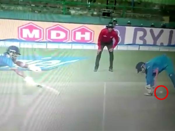 ஆனால் அங்கு நின்று கொண்டிருந்த கேப்டன் விராட் கோஹ்லி உடனடியாக பந்தை பிடித்து விக்கெட் கீப்பரை நோக்கி எறிந்தார். ஸ்பின் பந்து வீச்சாளர் ஓவர் என்பதால் ஸ்டம்புக்கு பக்கத்தில்தான் நின்றிருந்தார் டோணி. பந்தையும் சரியாக பிடித்துவிட்டார்.