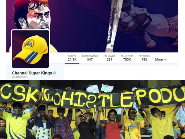 ட்விட்டரில் சென்னை சூப்பர் கிங்ஸ் அணியை இந்நாள் வரை 7 லட்சத்து 2 ஆயிரத்து 286 பேர் பின்தொடர்கிறார்கள்.