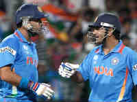 யுவராஜ் சிங் ஆட்டம் இழக்காமல் 50 ரன்கள் (75 பந்து, 3 பவுண்டரி) எடுத்தார். கேப்டன் டோனி 34 ரன்கள் (50 பந்து, 2 பவுண்டரி) எடுத்தனர்.