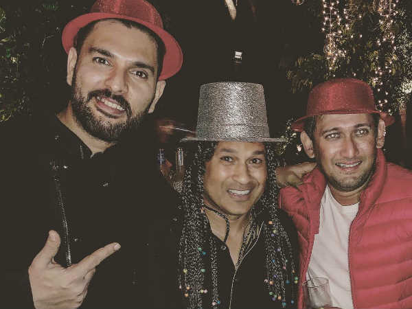 புகைப்படத்தின் பின்னால் உள்ள சூழலை பார்க்கும் போது ஆங்கில புத்தாண்டு பிறப்பையொட்டி நடைபெற்ற பார்ட்டி போல் தெரிகிறது. அதில் யுவராஜ் சிங் கருப்பு நிற சட்டையுடன் சிகப்பு தொப்பியில் உள்ளார். சச்சின் டெண்டுல்கரோ தகதகவென ஜொலிக்கும் வெள்ளி நிற தொப்பியில் இரட்டை ஜடைகள் இணைக்கப்பட்ட ஒரு தொப்பியை அணிந்துள்ளார்.