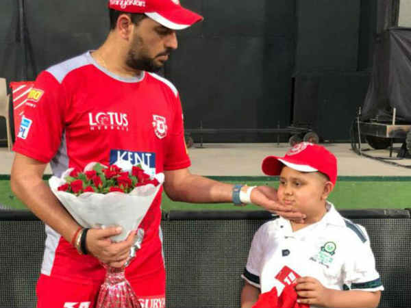 அதற்கு முன்பாக, தன்னுடைய ஹீரோவான யுவராஜ் சிங்கை சந்திக்க வேண்டும் என்று அந்த சிறுவன் ஆசைப்பட்டுள்ளான். அவனை நேரில் வரவழைத்து ஆறுதல் கூறியதுடன், தைரியத்தையும் அளித்துள்ளார் யுவராஜ். பஞ்சாப் அணியின் ஜெர்சி, தொப்பி போன்றவற்றை பரிசாக அளித்து, உடல்நலம் தேறி வருவதற்காக வாழ்த்தையும் கூறி யுவராஜ் அனுப்பியுள்ளார்.