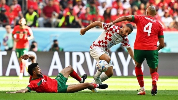 அதே போன்று மொராகோ வீரரும் நவ்சையிரும் தலையில் பந்தை தடுத்தார். குரோஷிய அணியின் கேப்டன் மொட்ரிச் இன்று தனது இடத்தையும் தாண்டி அனைத்து நிலையிலும் விளையாடி, எப்படியாவது கோல் அடிக்க முடியாதா என்று கடுமையாக போராடினார். எனினும் இரண்டு அணியின் தடுப்பாட்டமும் பலமாக இருந்ததால், அவர்களால் கோல் அடிக்க முடியவில்லை.