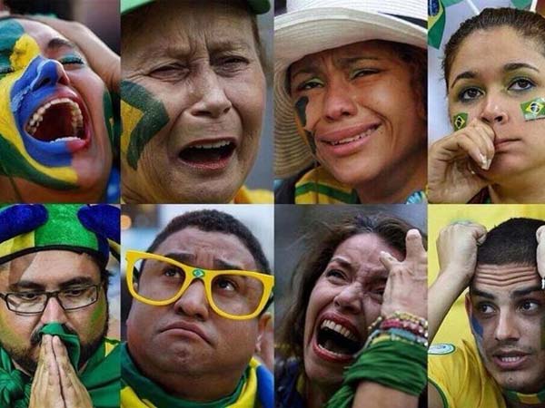 உலக கோப்பையை 6வது முறையாக தூக்கும் என்று எதிர்பார்த்திருந்த தங்கள் நாடு எதிரணியின் தாக்குதலுக்கு பதில் சொல்ல கூட முடியாமல் தவிப்பதை பார்த்து உடைந்து போய் அழும் பிரேசில் ரசிகை.