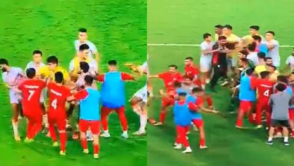 இதனால் அதிர்ச்சி அடைந்த இந்திய வீரர்கள் பதிலடியில் இறங்கினர். அப்போது இதனை தடுக்க வந்த இந்திய அணியின் கோல் கீப்பர் குர்பிரித் சிங்கை ஆப்கான் வீரர்கள் தாக்கினர். இதனால் இந்திய வீரர்கள் சுற்றி வளைத்து ஆப்கானிஸ்தான் வீரர்களை பதிலுக்கு தாக்க முயன்றதால் கால்பந்து மைதானமே போர்க்களம் போல் மாறியது. இதனையடுத்து, நடுவர்கள் வீரர்களை வந்து அமைதி படுத்தினர். இதனால் பரபரப்பு ஏற்பட்டது.