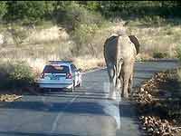 தாங்கள் தங்கியிருந்த பேக்கன்பங் புஷ் லாட்ஜிலிருந்து அவர்கள் கிளம்பியபோது வழியில் முதல் தடவையாக யானை ஒன்று குறுக்கிட்டு மரத்தைப் பிடித்து உலுக்கியதால் வாகனம் தொடர்ந்து செல்வது தடைபட்டது. கிட்டத்தட்ட நான்கு நிமிடங்கள் அவர்களது வாகனம்போக முடியாமல் நின்றிருந்தது.