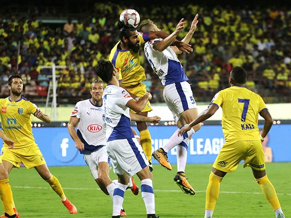 இதையடுத்து ஆட்டத்தின் 17 ஆவது நிமிடத்தில் பெங்களூரு அணியின் மிக்கு பந்தை எடுத்துக் கொடுக்க சுனில் அற்புதமாக ஒரு கோல் அடித்தார். இதையடுத்து ஆட்டம் கடுமையாக மாறியது. கேரளா அணியினரும் சிறப்பாக விளையாடினார்.இதைத் தொடர்ந்து ஆட்டத்தின் 30 ஆவது நிமிடத்தில் கேரளா அணியின் ஸ்லாவிஸ்லா ஒரு கோல் அடித்து அசத்தினார்.