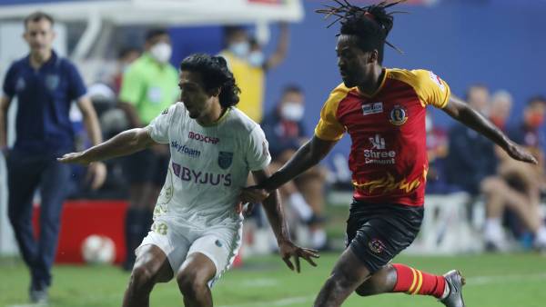 கோவா : 2020 - 21 இந்தியன் சூப்பர் லீக் கால்பந்து தொடரின் லீக் சுற்றில் எஸ்சி ஈஸ்ட் பெங்கால் - கேரளா பிளாஸ்டர்ஸ் அணிகள் மோதின.