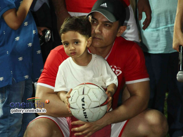 ஆமீர் கான், கிரண் ராவின் மகன் ஆசாத் கானும் மைதானத்தில் வந்து தன் பங்குக்கு பந்தை எத்தினார்.