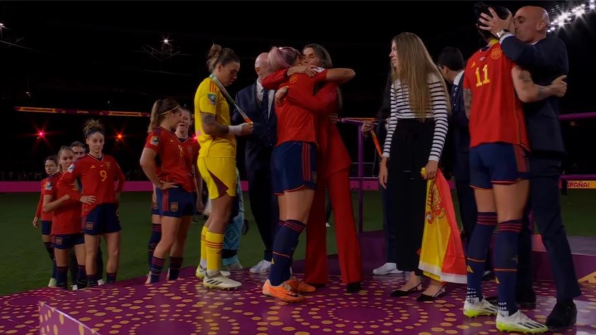 சிட்னி: மகளிர் கால்பந்து உலகக்கோப்பை இறுதிப்போட்டியில் இங்கிலாந்து அணியை வீழ்த்தி ஸ்பெயின் அணி கோப்பையை வென்றது. அப்போது கால்பந்து வீராங்கனை ஜெனிபரை கட்டியணைத்து பாராட்டிய ஸ்பெயின் கால்பந்து சங்கத் தலைவர் லூயிஸ் ருபியாலெஸ், திடீரென உதட்டில் முத்தமிட்டது சர்ச்சையை ஏற்படுத்தியது.