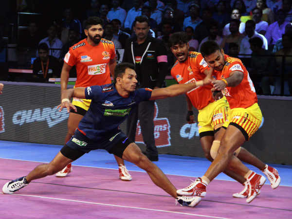 மற்றொரு போட்டியில் புனேரி பல்தான் - டபாங் டெல்லி அணிகள் மோதின. முதல் பாதியில் இரு அணிகளும் நெருக்கமாக புள்ளிகளை பெற்று போட்டியின் சுவாரஸ்யத்தை கூட்டின. புனேரி அணி 22-20 என முதல் பாதியில் முன்னிலையில் இருந்தது.