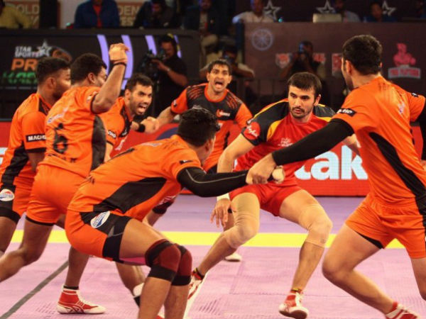 முதல் போட்டியில் யு மும்பா அணி தன் சொந்த மண்ணில் புனேரி பல்தான் அணியை சந்தித்தது. இந்தப் போட்டியில் இரு அணிகளும் தற்காப்பு ஆட்டம் ஆடின. அதனால், முதல் பாதியில் இரு அணிகளும் சேர்த்தே 20 புள்ளிகள் தான் எடுத்தன.