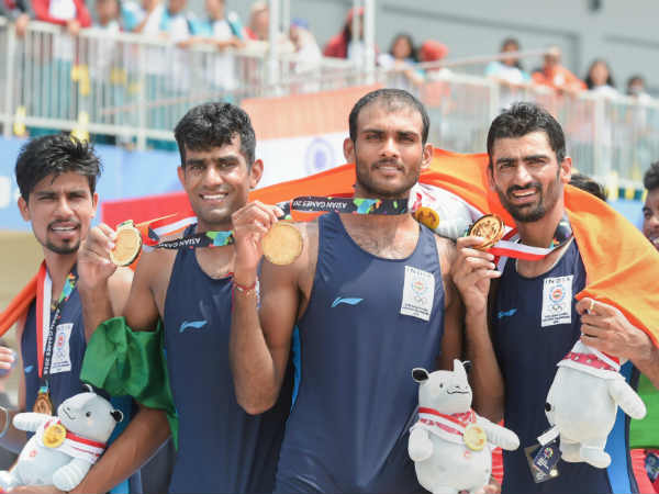 ஆடவர் நால்வர் ஸ்கல்ஸ் பிரிவு இறுதிச் சுற்றில் இந்தியா போட்டி தூரத்தை 6:17.13 நிமிடங்களில் கடந்து முதல் இடத்தை பிடித்தது. இதன் மூலம் துடுப்புப் படகுப் போட்டியில் இந்த ஆசிய விளையாட்டுப் போட்டிகளில் முதல் தங்கத்தை வென்றது. இதே போட்டியில் இந்தோனேசியா இரண்டாம் இடமும், தாய்லாந்து மூன்றாம் இடமும் பிடித்தன.