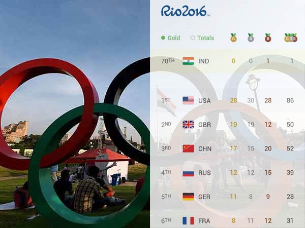சாக்ஷி மாலிக் வென்ற வெண்கலப் பதக்கத்தின் மூலம் பதக்கப் பட்டியலில் இந்தியா இடம் பிடித்துள்ளது. ஒரே ஒரு வெண்கலப் பதக்கத்துடன், பதக்கப் பட்டியலில் 70வது இடத்தில் இந்தியா உள்ளது.