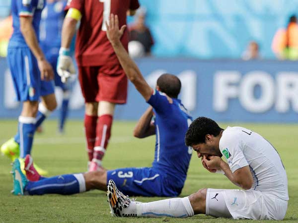 இதற்கு முன், கடந்தாண்டு பிரீமியர் லீக் போட்டியில் லிவர்ஃபூல் அணிக்காக விளையாடிய சுவாரஸ், செல்சியாவின் இவானோவிக்கின் கையில் கடித்தார். இதற்காக 10 போட்டியில் விளையாட தடை பெற்றார்.