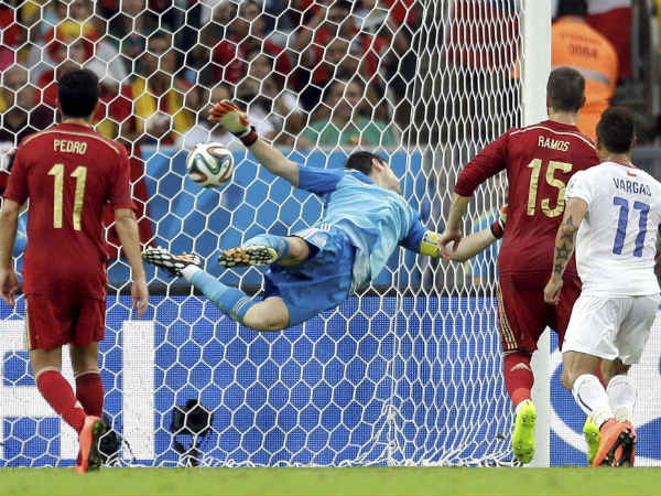 சிலி ஒரு கோல் போட்டிருந்த நிலையில், 43வது நிமிடத்தில், சிலி போட்ட கோலை தடுத்து நிறுத்தினார் கேஸில்லாஸ். ஆனால் அந்தப் பந்தை வேகமாக அவர் உள்ளே அடித்தபோது அது அப்படியே ஓடி வந்து சிலியின் அரங்குயிஸின் காலில் தஞ்சமடைந்த்து. விடுவாரா அரங்குயிஸ்.. அப்படியே அதை அவர் திருப்பி அடிக்க.. அது கோலானது.. கேஸில்லாஸ் விரக்தியில் நொந்தே போய் விட்டார்.