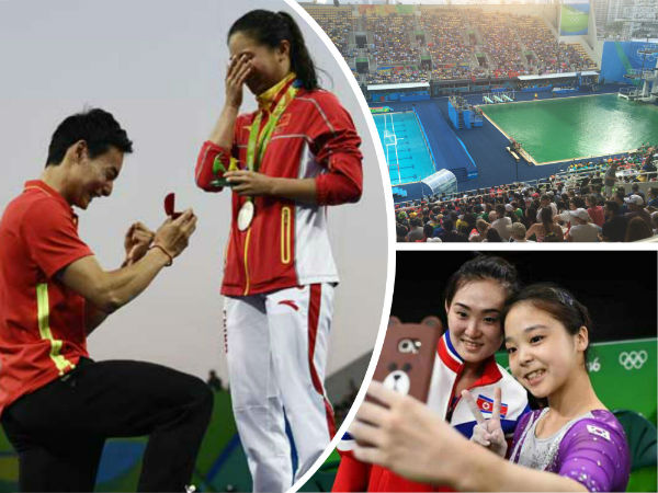 சீனாவை சேர்ந்த நீச்சல் வீராங்கனை ஹீ ஜி வெள்ளிப் பதக்கம் வென்றார். அவர் பதக்கம் வென்ற கையோடு சீனாவை சேர்ந்த நீச்சல் வீரர் கின் கை வைர மோதிரத்தை கொடுத்து தன்னை திருமணம் செய்ய சம்மதமா என்று கேட்டு அசத்தினார்.