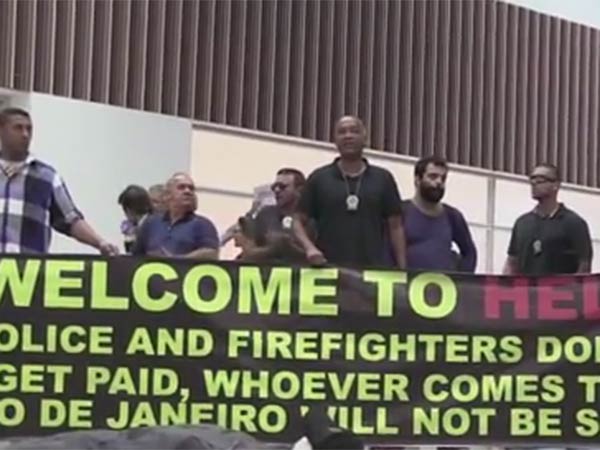 வெல்கம் டு ரியோ என்று வைக்கப்பட்டுள்ள விளம்பரப் பலகைகளுக்குக் கீழே போலீஸ் சார்பில் வெல்கம் டு ஹெல் ( நரகம்) என்ற பதாகைகளை வைத்து வருகின்றனர். இதனால் பிரேசில் அரசுக்குத் தர்மசங்கடமாகியுள்ளது.