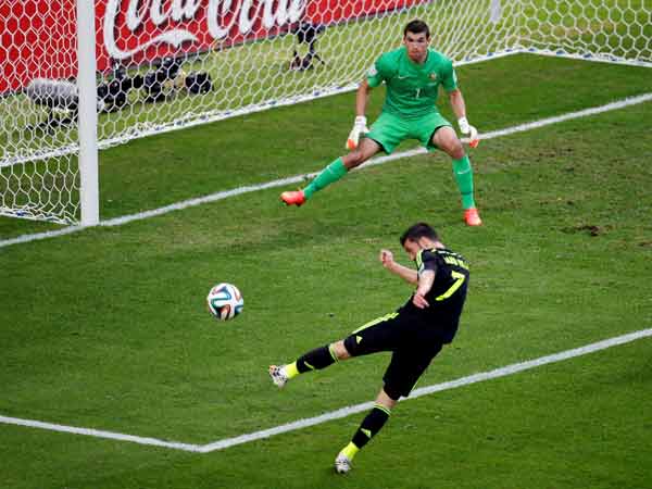 17வது நிமிடத்தில் ஸ்பெயினின் காசரோலா அடித்த பந்தை ஆஸ்திரேலியாவின் ஸ்பிரானோவிக் கோல் விழாமல் லாவமாக தடுத்தார்.