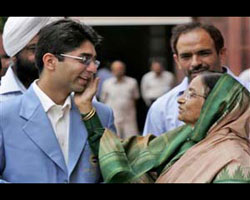 பிந்த்ராவை அவரது தாயார் பப்லி பிந்த்ரா உச்சி முகர்ந்து வாழ்த்தி வரவேற்றார்.