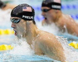 இன்று காலை நடந்த 200 மீட்டர் நீச்சல் போட்டியில் பெல்ப்ஸ் அந்த தூரத்தை 1:54:23 நிமிடங்களில் கடந்தார். இதன் மூலம் ஒலிம்பிக்கில் பங்கேற்கும் முன் அமெரிக்காவில் நடந்த தகுதிச் சுற்றுப் போட்டிகளில் தான் படைத்த 1:54.80 நிமிடங்கள் என்ற சாதனையை அவரே முறியடித்தார்.