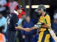 வாட்சன் 7 சிக்சர், 10 பவுண்டரி உட்பட 132 பந்தில் 136, பாண்டிங் 1 சிக்சர், 12 பவுண்டரி உட்பட 111 ரன்களுடன் ஆட்டமிழக்காமல் இருந்தனர். ஆஸ்திரேலியா 41.5 ஓவரில் 1 விக்கெட் இழ்பபுக்கு 258 ரன்கள் எடுத்து 9 விக்கெட் வித்தியாசத்தில் வென்று, பைனலுக்குள் நுழைந்தது.