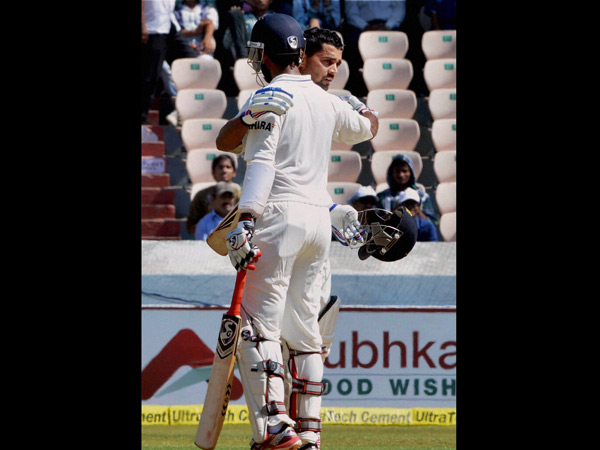 ஆஸ்திரேலிய அணிக்கு எதிராக கடந்த 2001-ம் ஆண்டு கொல்கத்தாவில் நடைபெற்ற டெஸ்ட் போட்டியில் ராகுல் டிராவிட்டும் விவிஎஸ் லஷ்மணும் இணைந்து 376 ரன்ளைக் குவித்திருந்தனர்.அதன் பின்னர் தற்போது ஹைதராபாத் டெஸ்ட் போட்டியில் புஜாரா, முரளி விஜய் ஜோடி 370 ரன்களைக் குவித்திருக்கிறது.