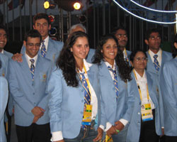 The Indian contingent at the flag hoistng ceremony in the Olympic Games village in Beijing on Thursday