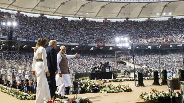 குஜராத்தில் அமைக்கப்பட்டுள்ள சர்தார் வல்லபாய் பட்டேல் கிரிக்கெட் மைதானத்தில் 1,10,000 இருக்கைகள் உள்ளன. மோடி - டிரம்ப் பங்கேற்கும் இரு நாட்டு தலைவர்கள் பங்கேற்கும் இந்த சிறப்பு நிகழ்ச்சிக்கு அத்தனை இருக்கைகளிலும் மக்கள் கூட்டம் நிரம்பி வழிந்தது.