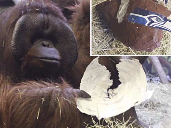 இது குறித்து ஹாகிள் சரணாலயத்தை சேர்ந்த எரிக்கா ஹேன்சன் கூறும்போது, கடந்த வியாழக்கிழமை பேப்பரில் தயாரித்த ஹெல்மெட்டுகள் வரிசையாக வைக்கப்பட்டு இருந்த இடத்திற்கு ஈலி கொண்டு செல்லப்பட்டது. அங்கு சியாட்டில் சீஹாக்ஸ் என்ற பேஸ்பால் அணியின் சின்னம் கொண்ட பேப்பர் ஹெல்மெட்டும் இருந்தது.