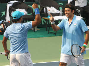1-வது குரூப் போட்டிகளில் இந்தியா-தென்கொரியா அணிகள் டெல்லியில் விளையாடி வருகின்றன. நேற்று நடைபெற்ற இரட்டையர் டென்னிஸ் போட்டியின் முதல் சுற்று ஆட்டத்தில், இந்தியாவின் லியாண்டர் பெயஸ், புதுமுக வீரரான புராவ் ராஜாவுடன் இணைந்து தென்கொரியாவின் யாங்-கியூ-லிம் மற்றும் ஜி சங் நாம் இணையை எதிர்கொண்டார்.